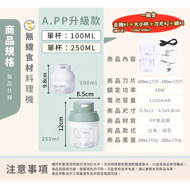 QIDINA 升級款無線食材料理機綠色|白色Food Processors & Meat GrindersQIDINA