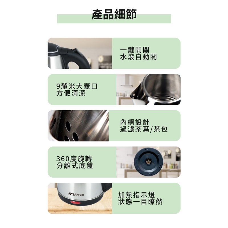 【SANSUI 山水】1.8L大容量304不銹鋼快煮壺 SWB-20SWB-15|SWB-20KettlesSANSUI山水 官方旗艦店 | 創造美好舒適生活