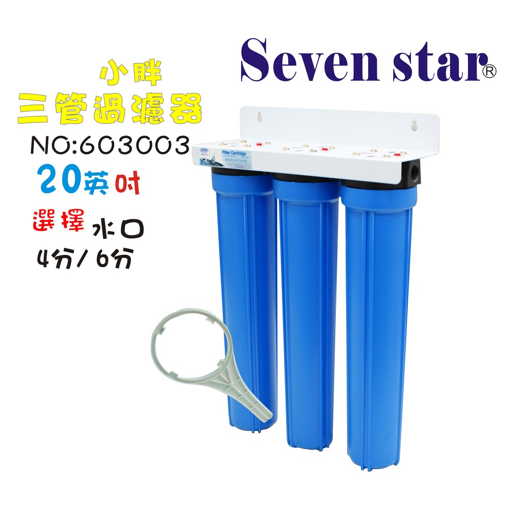 20吋小胖三管過濾器 地下水濾水器 淨水器 水塔過濾器 貨號 603003 Seven star淨水網4分進出水口|6分進出水口|第一道換透明殼-4分|第一道換透明殼-6分Water Filters, Coolers & DispensersSeven star 淨水