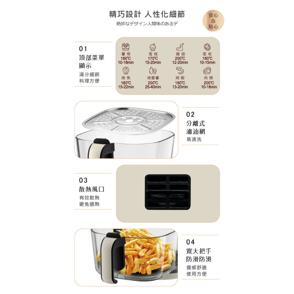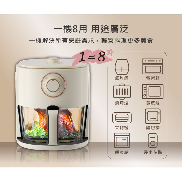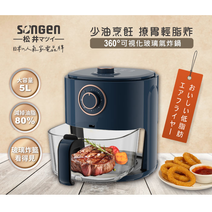【SONGEN松井】日系晶鑽可視玻璃氣炸鍋/烤箱/烘烤爐(SG-500AF)象牙白|蔚藍海Air FryersSONGEN松井 官方旗艦店|日本人氣家電品牌