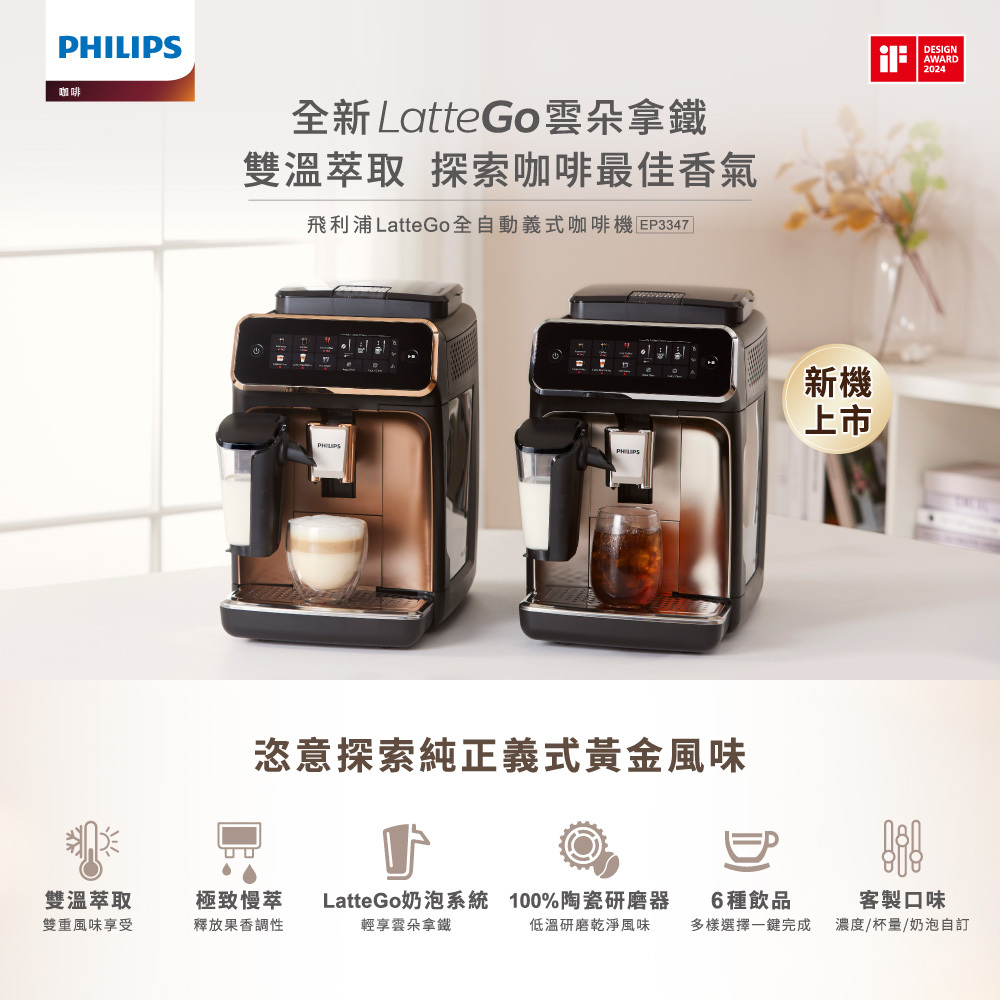 【PHILIPS 飛利浦】 LatteGo全自動義式咖啡機 (EP3347/84)(銀/金)單機香檳金|單機經典銀Coffee Machines & AccessoriesPhilips 飛利浦家電旗艦館