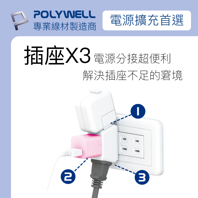 POLYWELL D型3面插座 2P 2孔插座 1轉3 體積小 不佔空間 台灣製造MIT 防火材質 寶利威爾 台灣現貨D型3面插座 2PElectric Sockets & Extension CordsPOLYWELL寶利威爾官方旗艦店