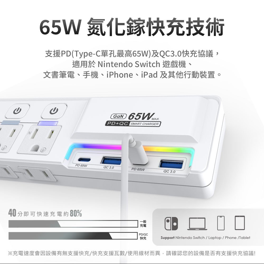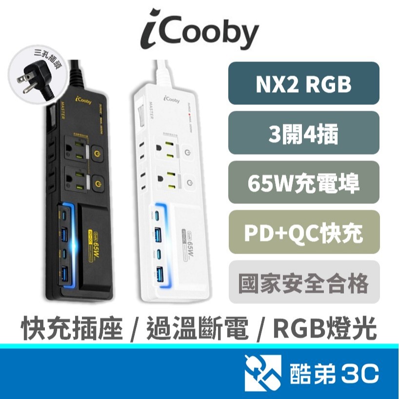 iCooby NX2 RGB 氮化鎵65W 延長線 三開四插 2A2C插孔|快速充電|豆腐頭|充電器插座|USB充電黑色|RGB|2A+2C,主商品x1|白色|RGB|2A+2C,主商品x1|白色|無光|2A+2C,主商品x1|黑色|無光|2A+2C,主商品x1|😘結帳加價購:手機充電線:超划算😘,主商品x1Electric Sockets & Extension CordsQD 酷弟3C