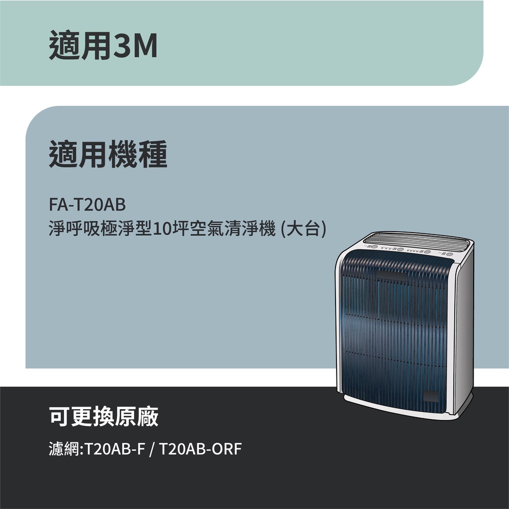 適用3M 極淨型 FA-T20AB 空氣清淨機T20AB-F T20AB-ORF 10坪 HEPA活性碳2合1濾網 濾芯