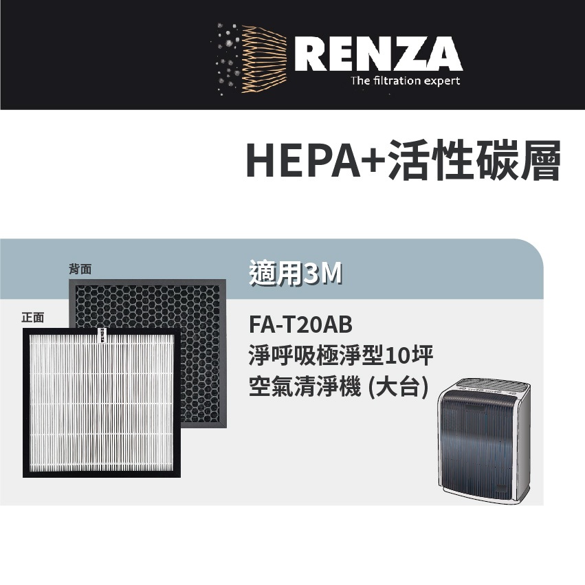 適用3M 極淨型 FA-T20AB 空氣清淨機T20AB-F T20AB-ORF 10坪 HEPA活性碳2合1濾網 濾芯適用3M 極淨型 FA-T20AB 空氣清淨機T20AB-F T20AB-ORF 10坪 HEPA活性碳2合1濾網 濾芯Air TreatmentRenza Filtration 濾網專家