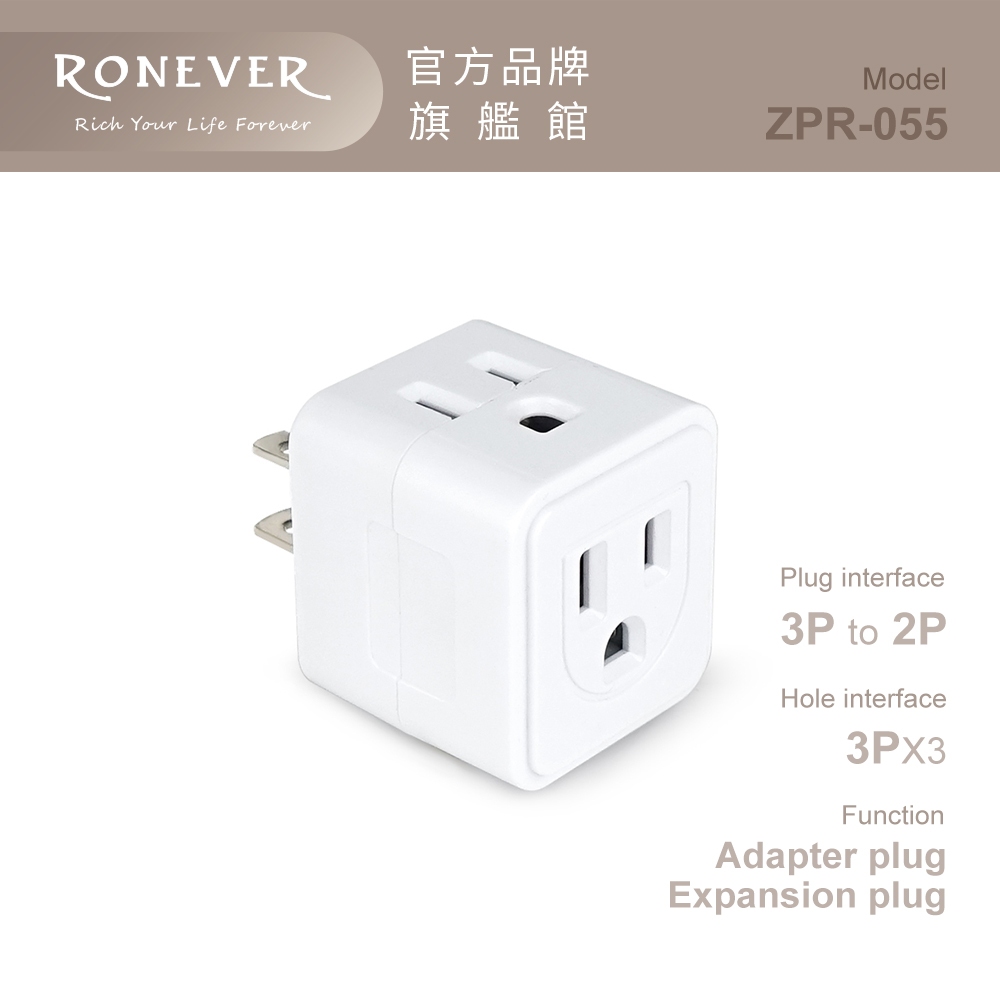 RONEVER ZPR-055 / 美式D型3P三面插ZPR-055Electric Sockets & Extension CordsRONEVER 官方品牌館