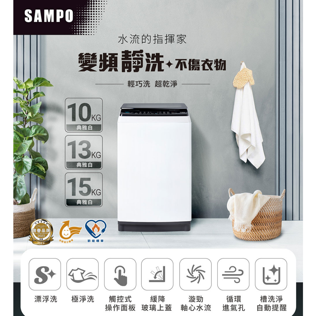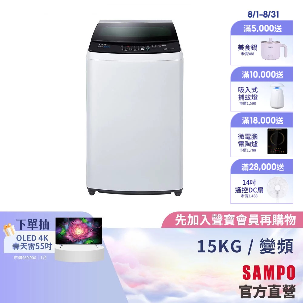 SAMPO聲寶 15Kg SOFT+漂浮洗變頻洗衣機ES-B15D-含基本安裝+舊機回收SAMPO聲寶 15Kg SOFT+漂浮洗變頻洗衣機ES-B15D-含基本安裝+舊機回收Washing Machines & DryersSAMPO聲寶 官方直營店