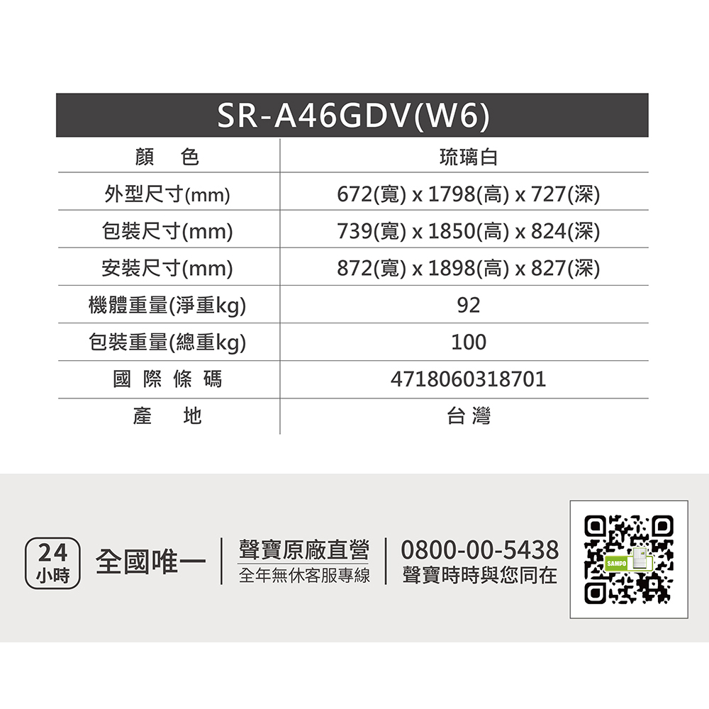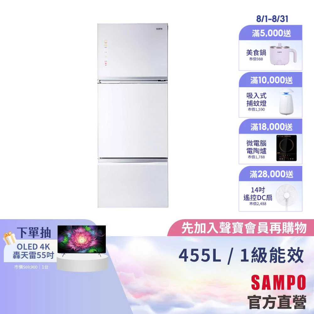 SAMPO聲寶 455L 1級變頻玻璃3門冰箱SR-A46GDV(W6)-含基本運送+安裝+回收舊機SAMPO聲寶 455L 1級變頻玻璃3門冰箱SR-A46GDV(W6)-含基本運送+安裝+回收舊機RefrigeratorsSAMPO聲寶 官方直營店