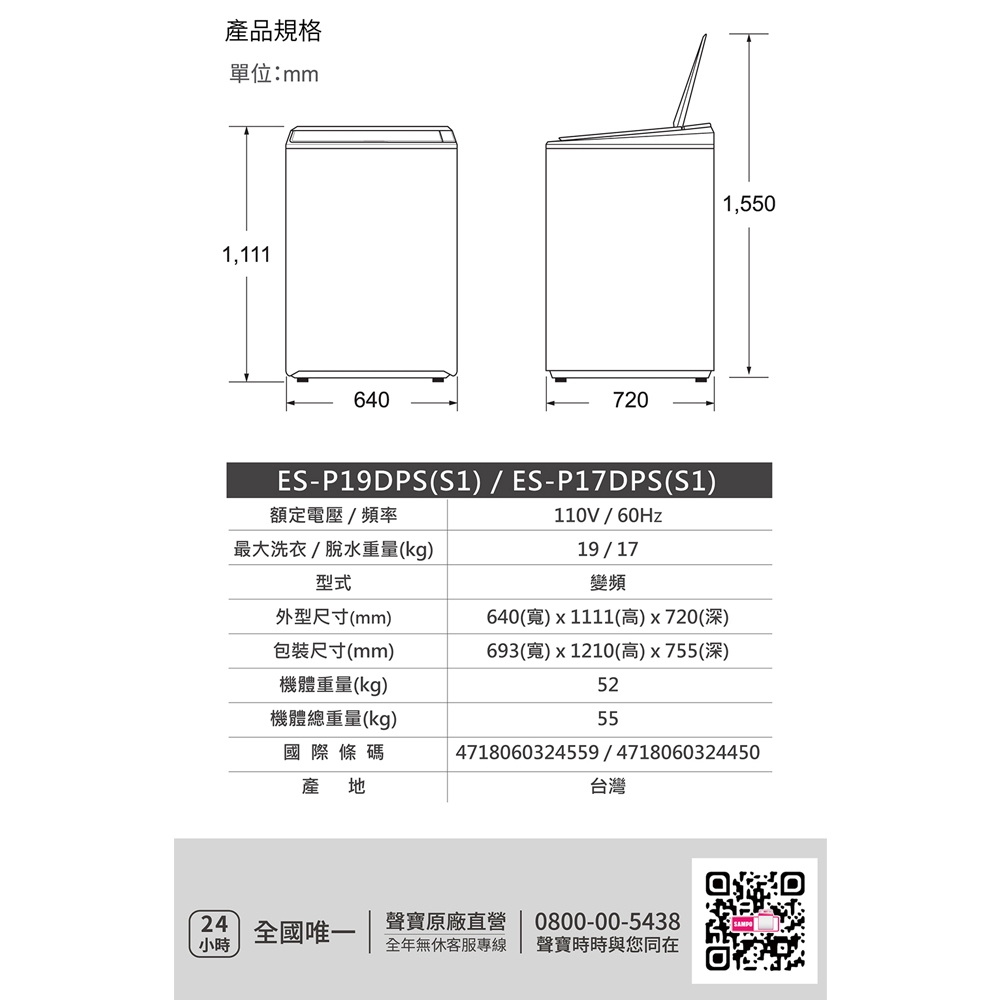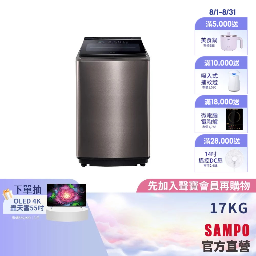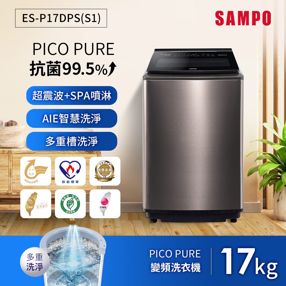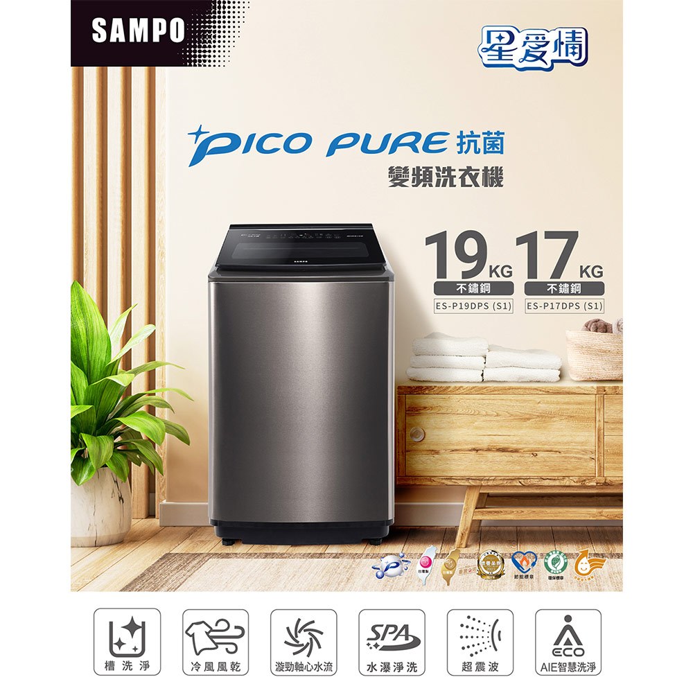 SAMPO聲寶 17公斤星愛情變頻超震波洗衣機ES-P17DPS(S1)-含基本安裝+舊機回收SAMPO聲寶 17公斤星愛情變頻超震波洗衣機ES-P17DPS(S1)-含基本安裝+舊機回收Washing Machines & DryersSAMPO聲寶 官方直營店