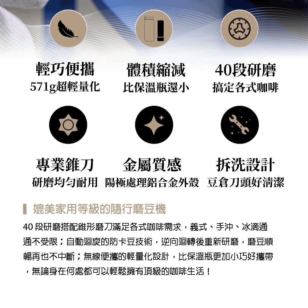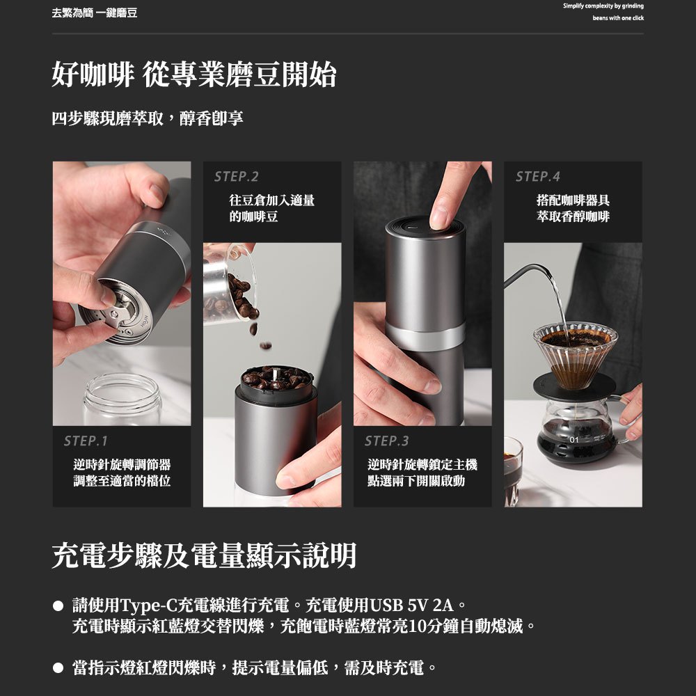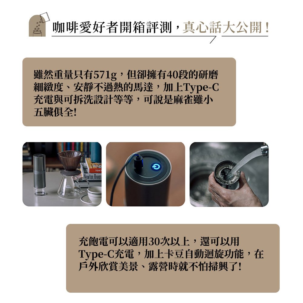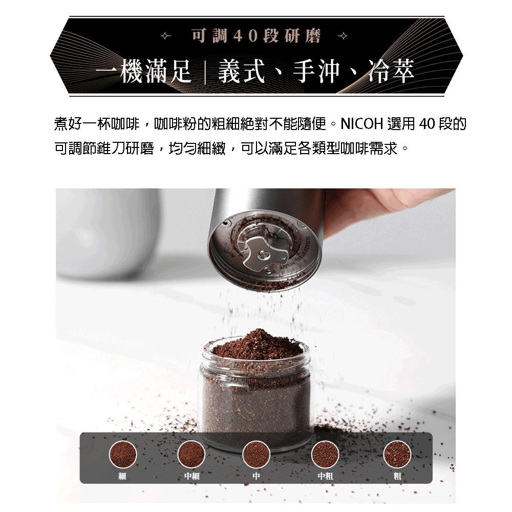 日本NICOH精研便攜USB電動磨豆機NK-M08送機能衣