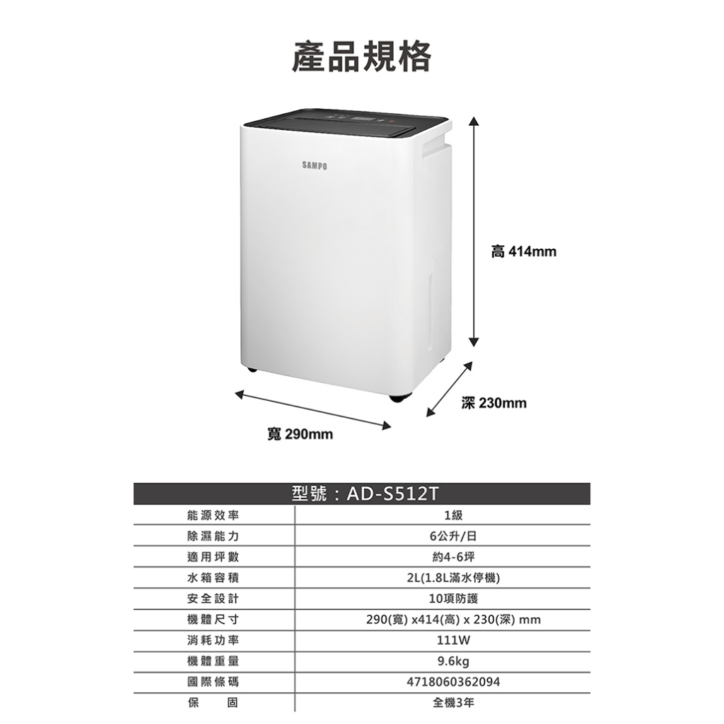 SAMPO聲寶 6L簡約輕巧除濕機 AD-S512TSAMPO聲寶 6L簡約輕巧除濕機 AD-S512TAir TreatmentSAMPO聲寶 官方直營店