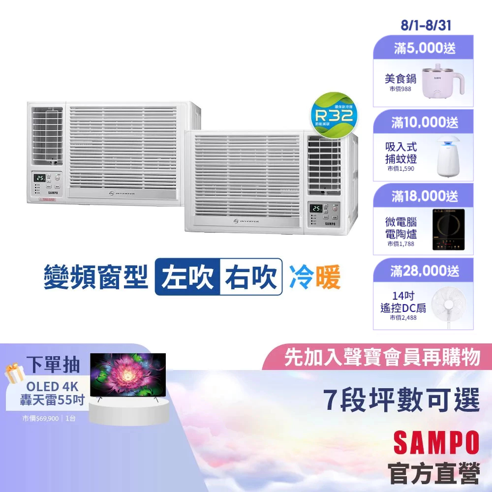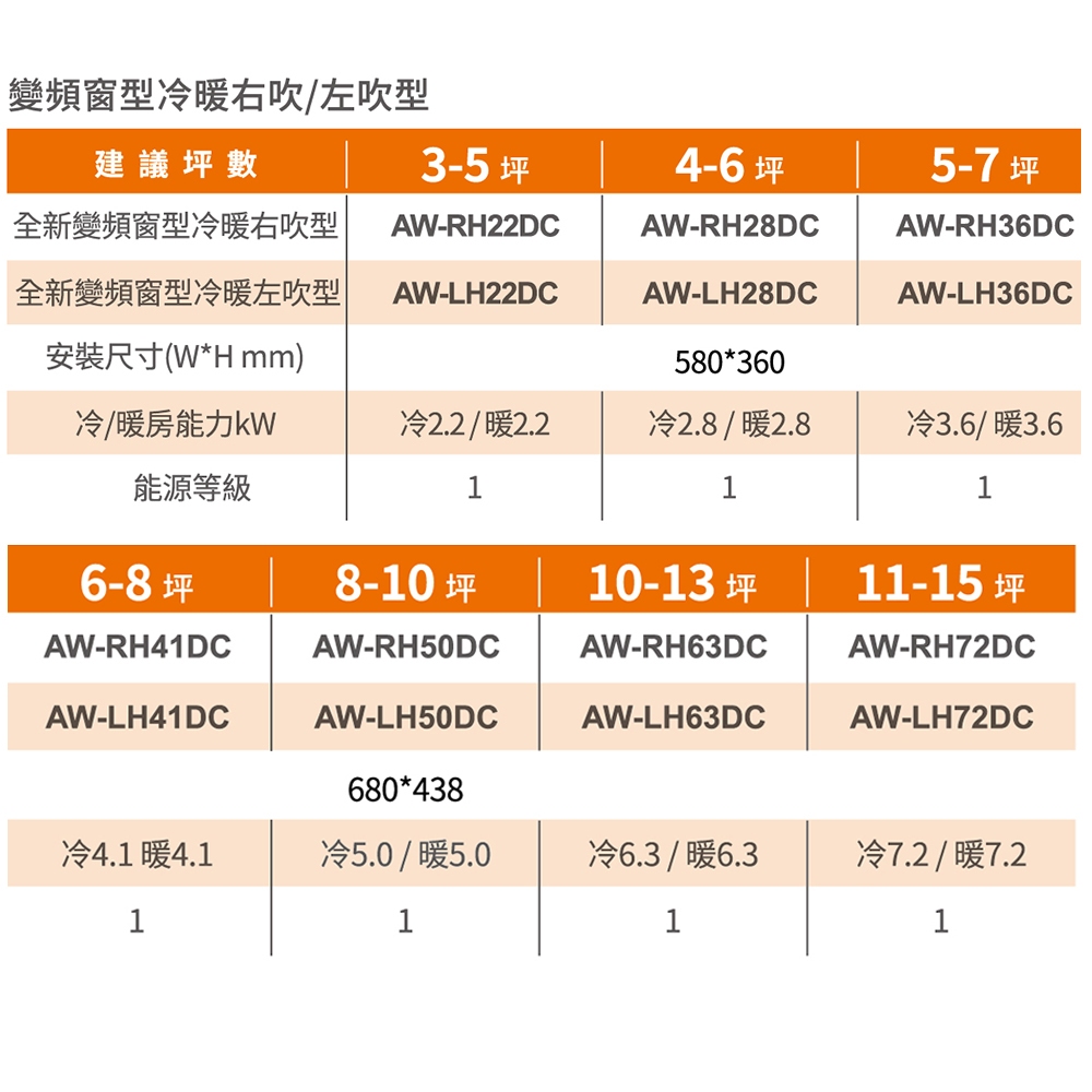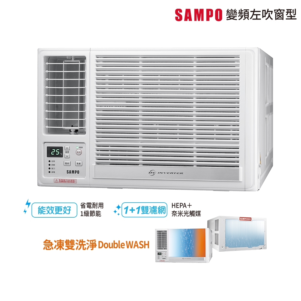 SAMPO聲寶 1級變頻冷暖窗型冷氣 7段坪數可選RH/LH系列-含基本運送安裝+舊機回收11-15坪右吹AW-RH72DC|3-5坪右吹AW-RH22DC|5-7坪右吹AW-RH36DC|8-10坪右吹AW-RH50DC|10-13坪右吹AW-RH63DC|4-6坪左吹AW-LH28DC|8-10坪左吹AW-LH50DC|4-6坪右吹AW-RH28DC|6-8坪右吹AW-RH41DC|5-7坪左吹AW-LH36DC|3-5坪左吹AW-LH22DC|6-8坪左吹AW-LH41DC|10-13坪左吹AW-LH63DC|11-15坪左吹AW-LH72DCCoolingSAMPO聲寶 官方直營店