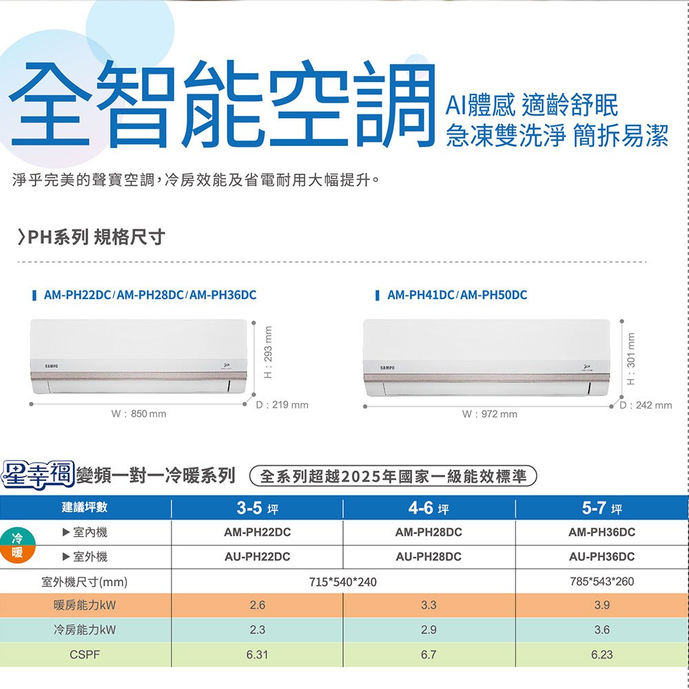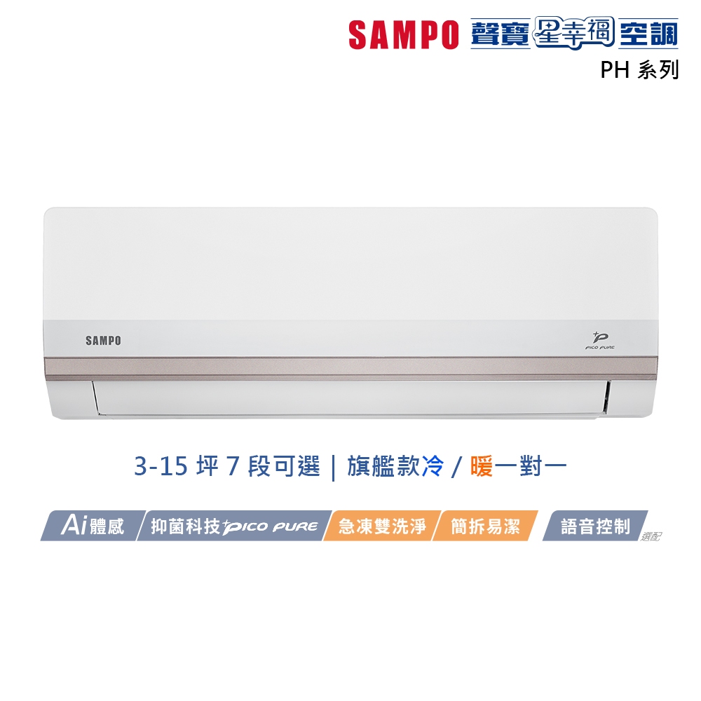 SAMPO聲寶 1級變頻冷暖一對一冷氣-旗艦PH系列 星幸福-含基本安裝+舊機回收12-16坪AU-PH72DC|3-5坪AU-PH22DC|4-6坪AU-PH28DC|5-7坪AU-PH36DC|6-8坪AU-PH41DC|8-10坪AU-PH50DC|10-13坪AU-PH63DCCoolingSAMPO聲寶 官方直營店