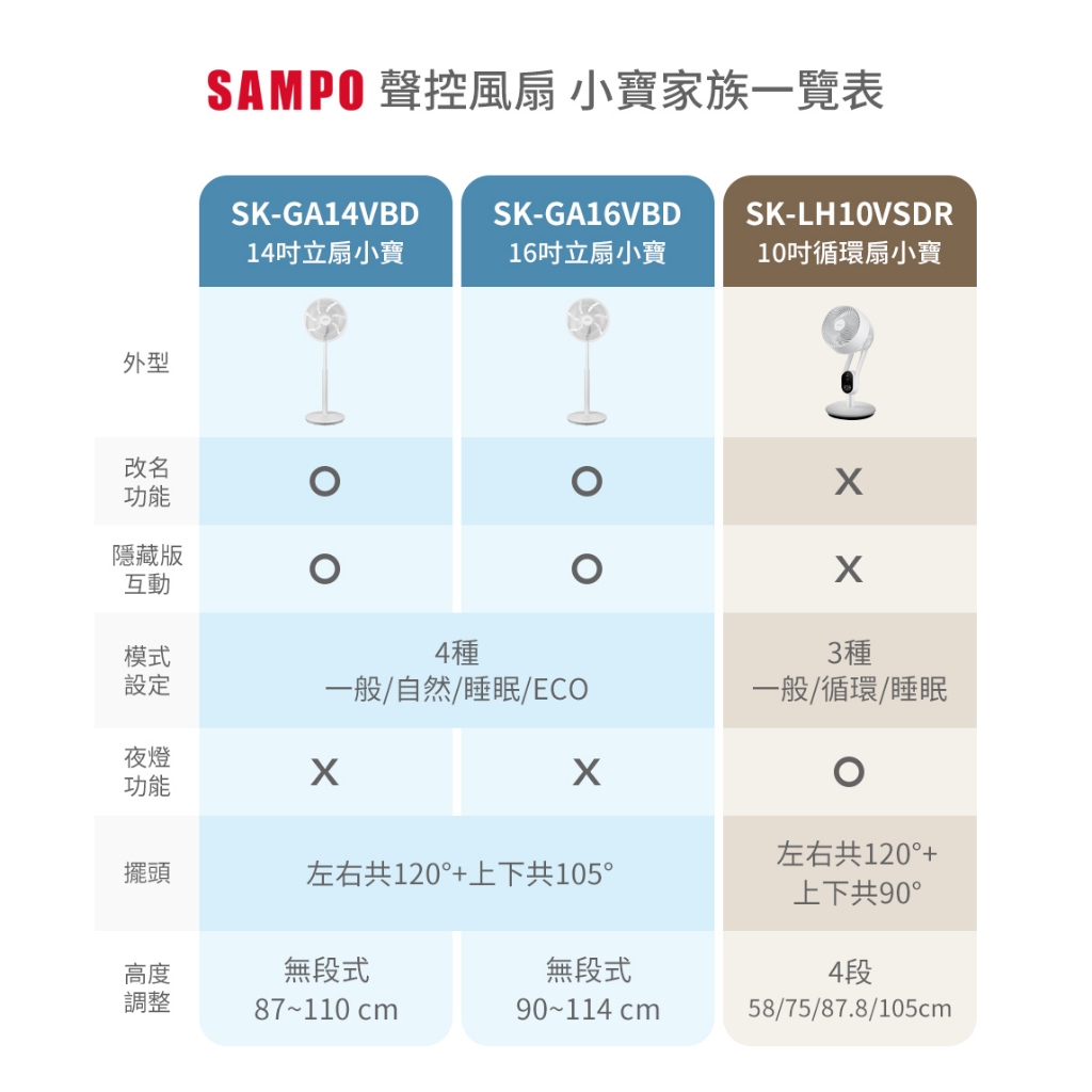 SAMPO聲寶 14吋智能聲控3D循環DC馬達立扇(2.0版) SK-GA14VBD小寶新品|限時特賣CoolingSAMPO聲寶 官方直營店