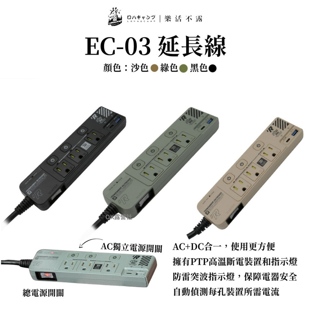 樂活不露 延長線 3轉2 機甲風延長線 氮化鎵延長線【OK露營社】EC02 1.8米延長線,黑色|EC02 1.8米延長線,綠色|EC02 1.8米延長線,沙色|EC03 2米延長線,黑色|EC03 2米延長線,綠色|EC03 2米延長線,沙色|EC04 氮化鎵閃充延長線,黑色|EC04 氮化鎵閃充延長線,綠色|EC04 氮化鎵閃充延長線,沙色Electric Sockets & Extension CordsOK露營社