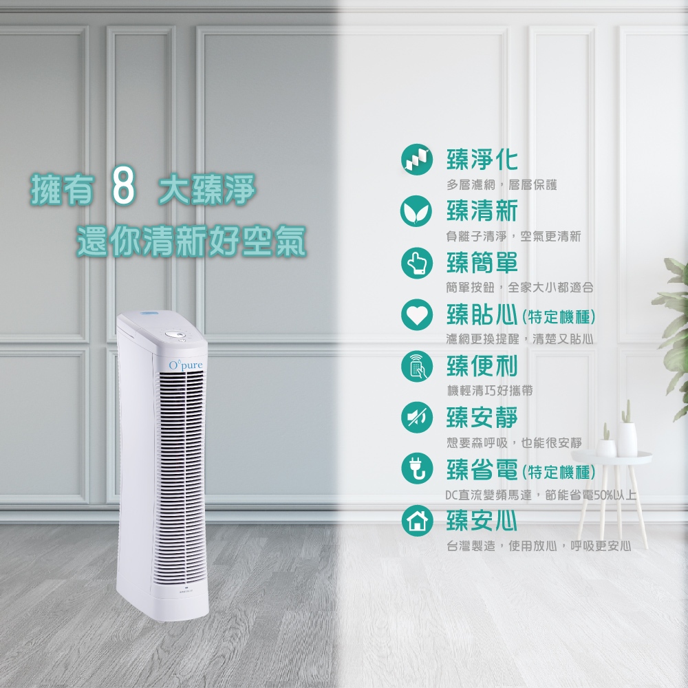 Opure臻淨 A7 免耗材 電漿殺菌 靜電集塵 DC節能空氣清淨機 一級能效 台灣製造 省電省錢 過敏 除臭 抗菌單台|雙台Air TreatmentOpure 臻淨科技