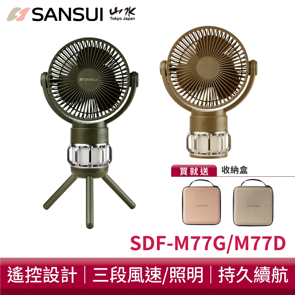 【SANSUI 山水】充電式露營隨行風扇(贈收納盒)SDF-M77G/M77D風暴沙 SDF-M77D|野戰綠 SDF-M77GCoolingSANSUI山水 官方旗艦店 | 創造美好舒適生活