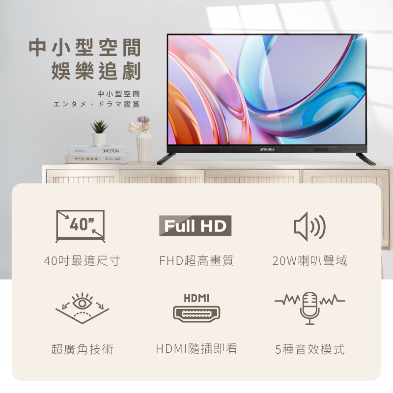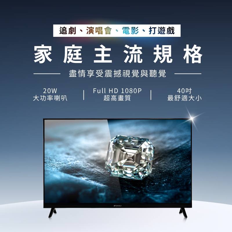 【SANSUI 山水】40型FHD液晶顯示器 電視 液晶電視 保固三年 SLED-4086SLED-4086 40型(非聯網)TVsSANSUI山水 官方旗艦店 | 創造美好舒適生活