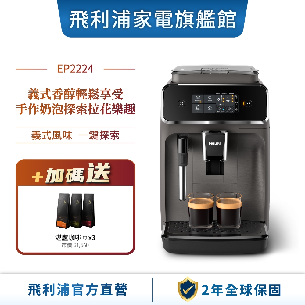 【PHILIPS 飛利浦】全自動義式咖啡機 EP2224/10 + 湛盧極品咖啡豆(3包)EP2224贈湛盧咖啡豆兌換券Coffee Machines & AccessoriesPhilips 飛利浦家電旗艦館