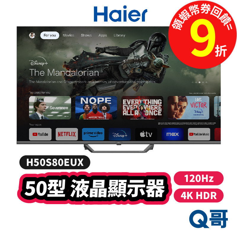 Haier 海爾 50吋 顯示器 QLED H50S80EUX DLG-120Hz Google TV 4K Hai08(勿下單❌)提醒使用蝦幣券等於8370|H50S80EUX下單同接受衍生費用現付|基本安裝可備註加購,壁掛安裝費聊聊確認|基本安裝費$600,偏遠地區會有額外收費TVsQ哥 電玩旗艦商城|Switch2 PS5 遊戲片 Xbox ptcg寶可夢