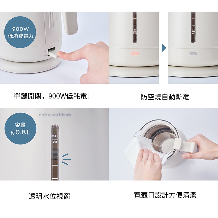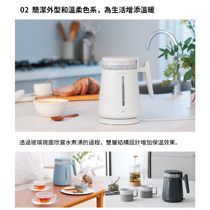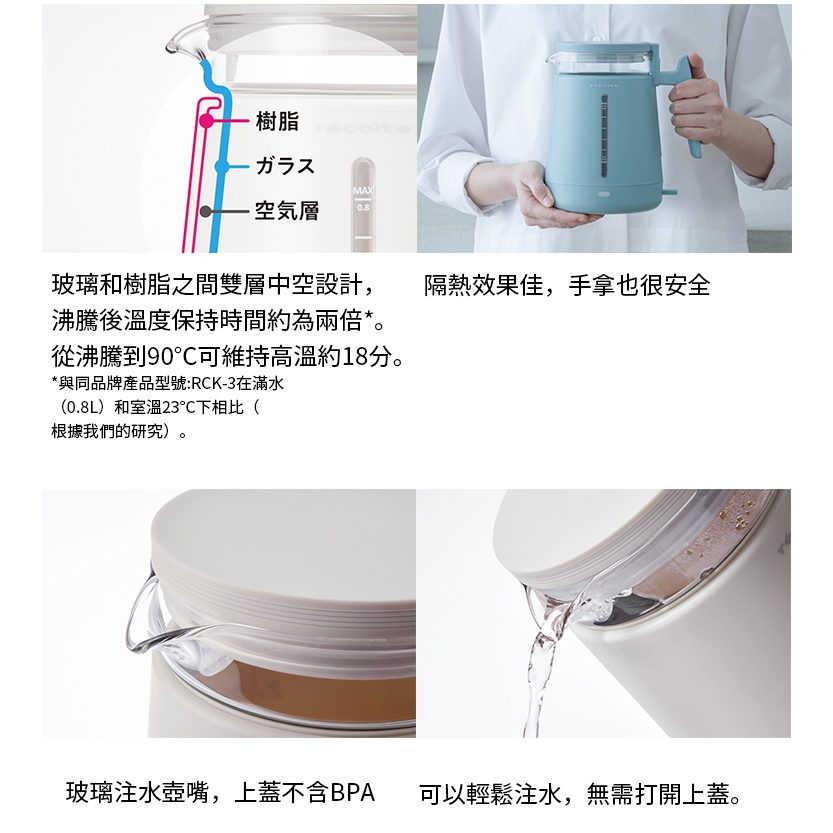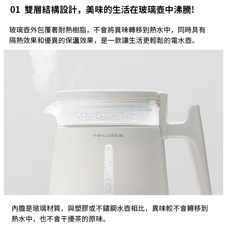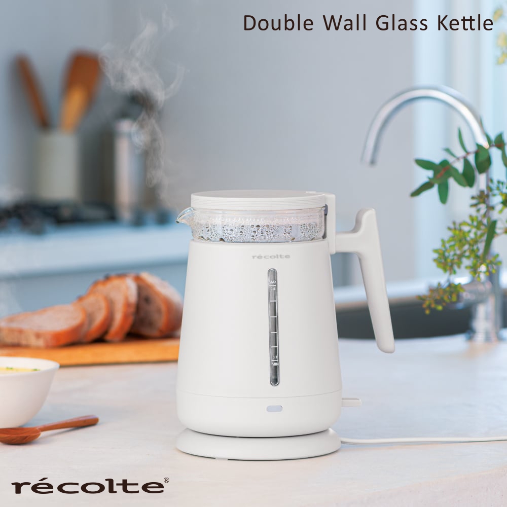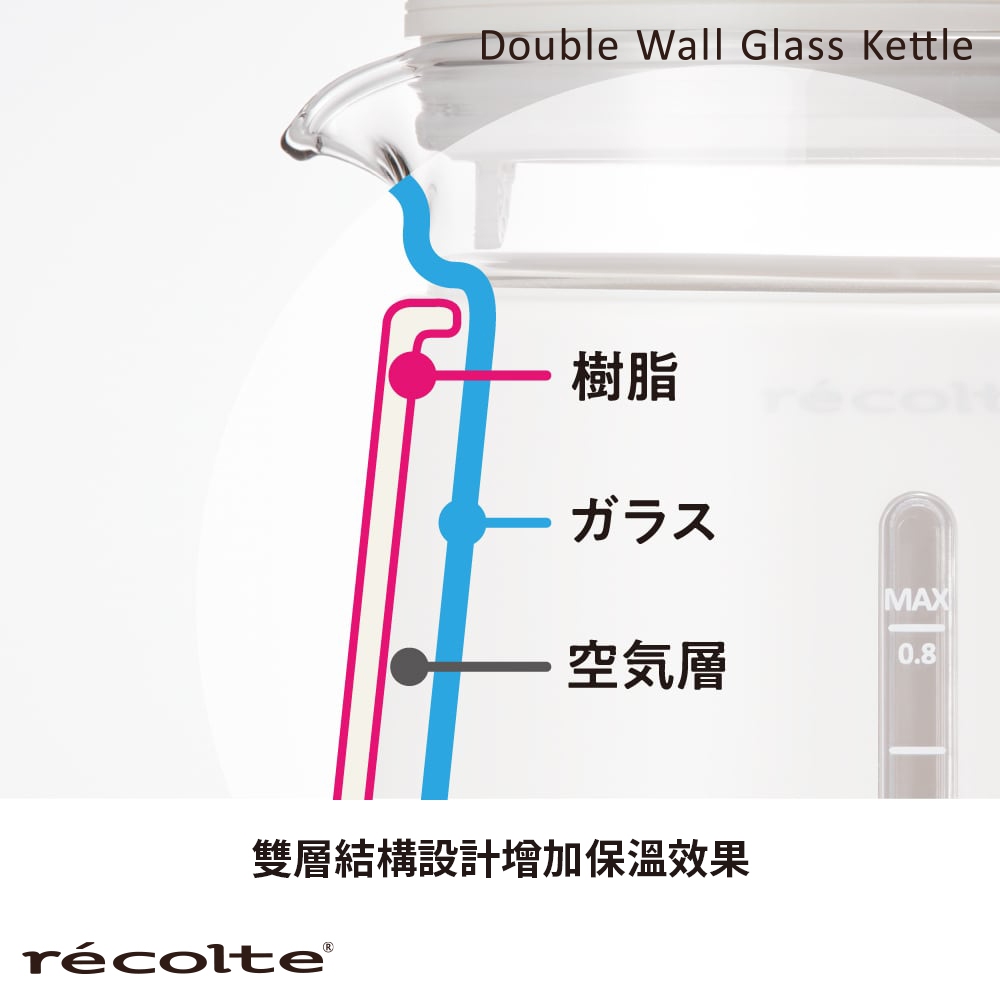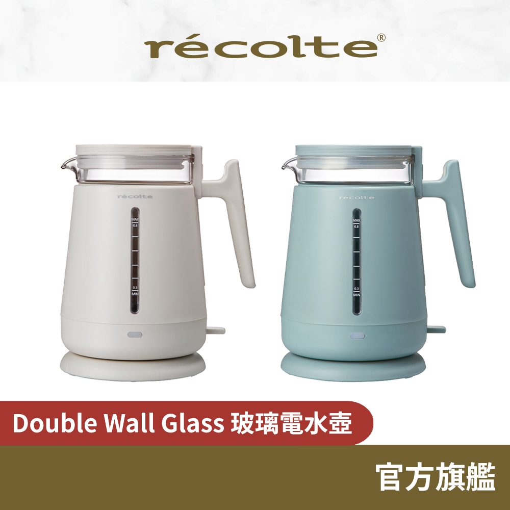 日本 recolte 玻璃電水壺 RDG-1 Double Wall Glass 雙層隔熱 快煮壺 防空燒 麗克特官方旗燕麥白(陳列品展示機)|夕霧藍(陳列品展示機)Kettlesrecolte 麗克特 官方旗艦館