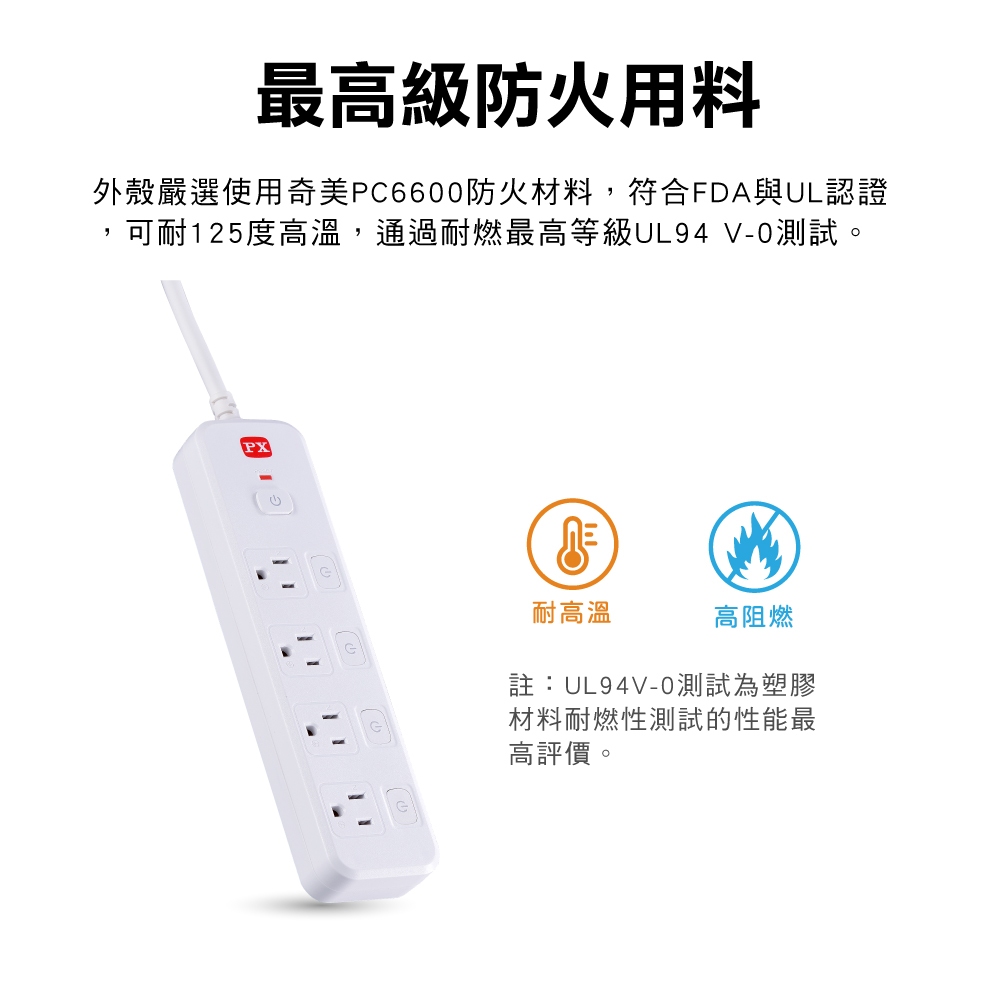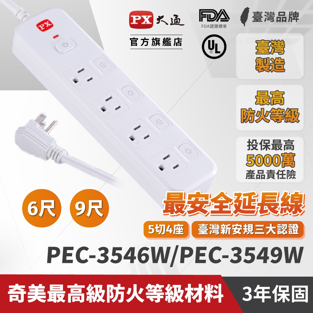 PX大通 3孔5切4座 PEC-3546W/ PEC-3549W 6尺/9尺 延長線 台灣製造 防火材料 耐熱阻燃PEC-3546W 6尺 1.8m|PEC-3549W 9尺 2.7mElectric Sockets & Extension CordsPX大通電子官方UHD 8K HDMI影音旗艦館