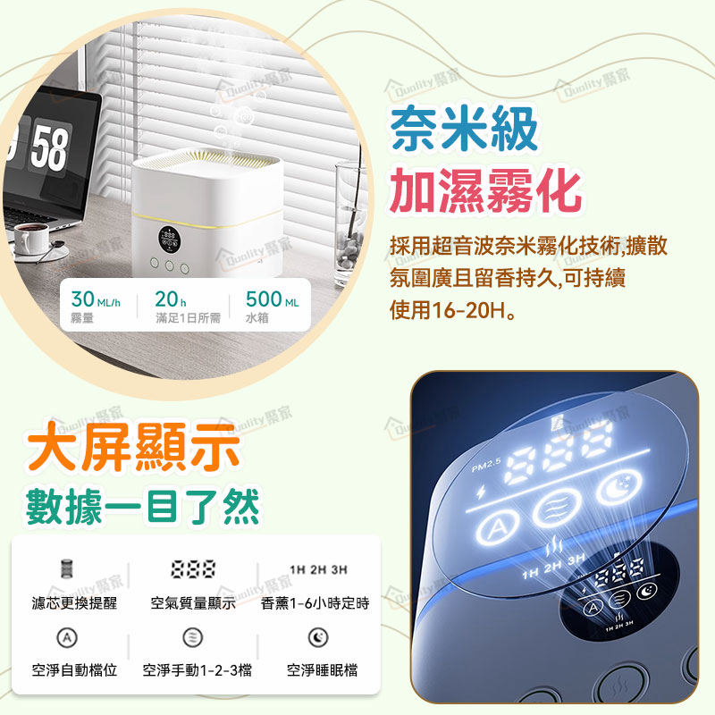 隔日達【Quality 聚家】負離子空氣清淨機 淨化加濕一體機 桌面小型淨化器 除煙味除甲醛【10%蝦幣回馈】UV紫光殺菌款 淨化加濕兩用|H13HEPA濾網 除醛淨味專用Air TreatmentQuality 聚家【官方旗艦店】