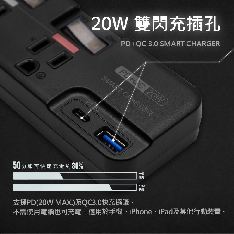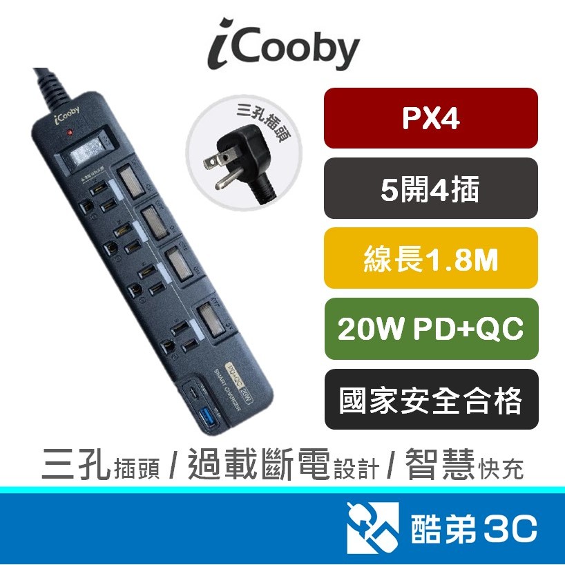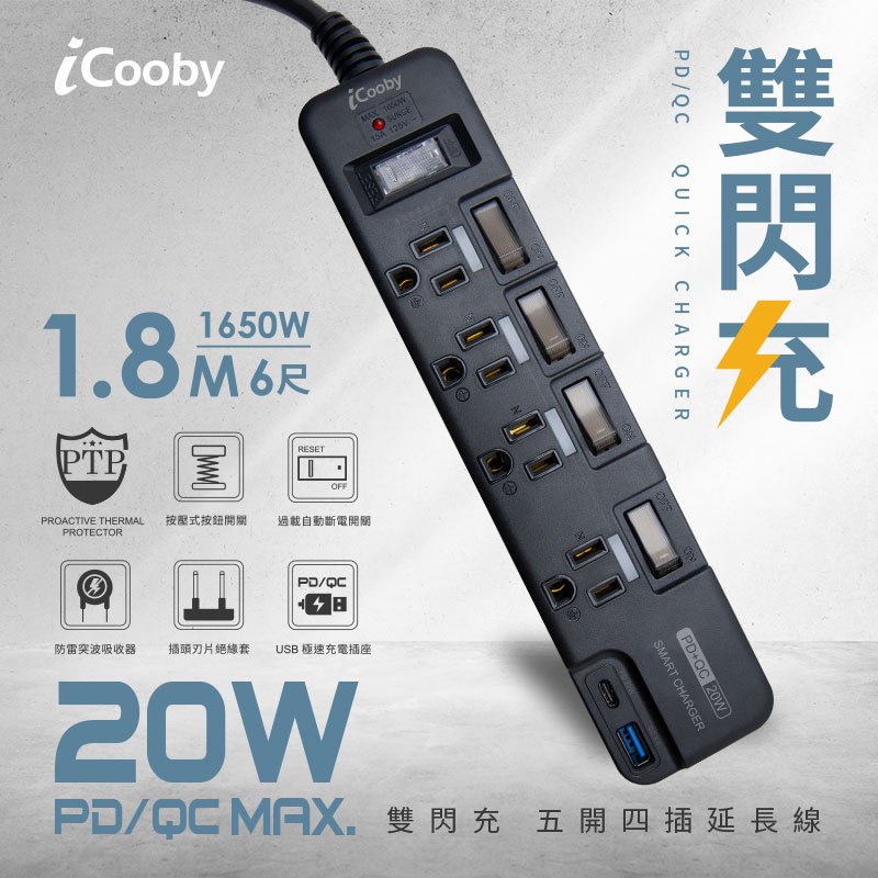 iCooby PX4 五開四插 PD+QC雙快充 延長線 1.8M 3孔延長線 雙閃充 SPD防雷 防火材質 快充延長線iCooby PX4 五開四插 PD+QC雙快充 延長線 1.8M 3孔延長線 雙閃充 SPD防雷 防火材質 快充延長線Electric Sockets & Extension CordsQD 酷弟3C