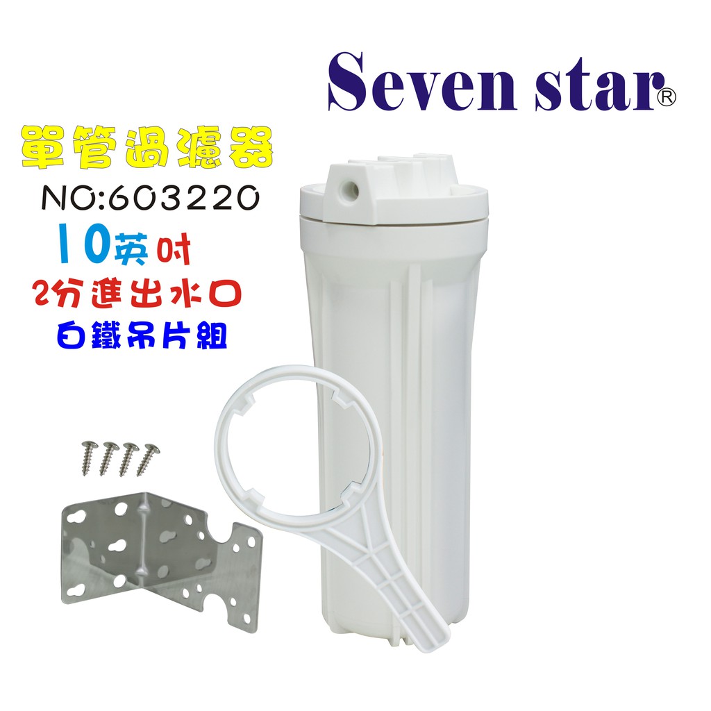 10吋單管白色過濾器附白鐵304吊片組 淨水器 濾水 電解水機 貨號 603220 Seven star淨水網2分|4分(不附接頭)|3分Water Filters, Coolers & DispensersSeven star 淨水