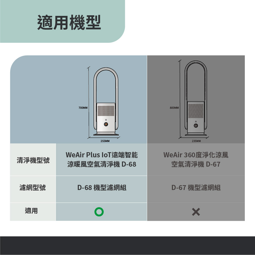 適用輝葉 HYD D-68 WeAir Plus IoT遠端智能涼暖風空氣清淨機 HEPA濾網 濾芯