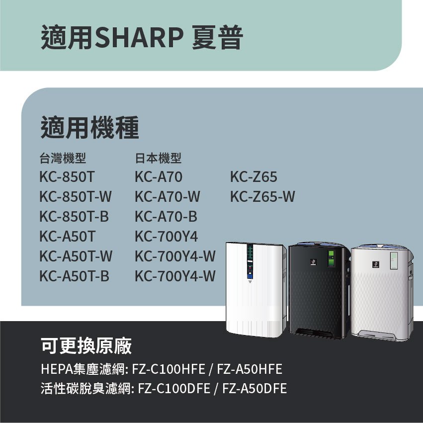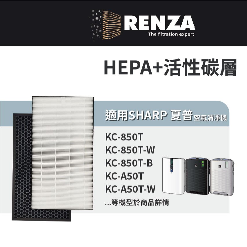 適用 Sharp 夏普 KC-A50T KC-850T KC-850T-W 空氣清淨機 HEPA+活性碳濾網 濾芯1片抗敏HEPA濾網|1片蜂巢活性碳濾網(除臭除甲醛)|1片 藍色水活力濾網(KC-A50專用)|1片 藍色水活力濾網(KC-850專用)Air TreatmentRenza Filtration 濾網專家