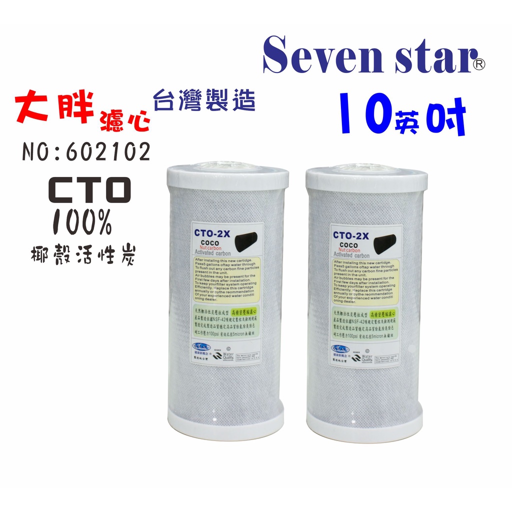 10吋大胖CTO椰殼活性炭濾心 水塔過濾器 水族養殖 濾水器 貨號 602102 Seven star淨水網10″大胖CTO活性碳 2支|10″大胖CTO活性碳 1支Water Filters, Coolers & DispensersSeven star 淨水