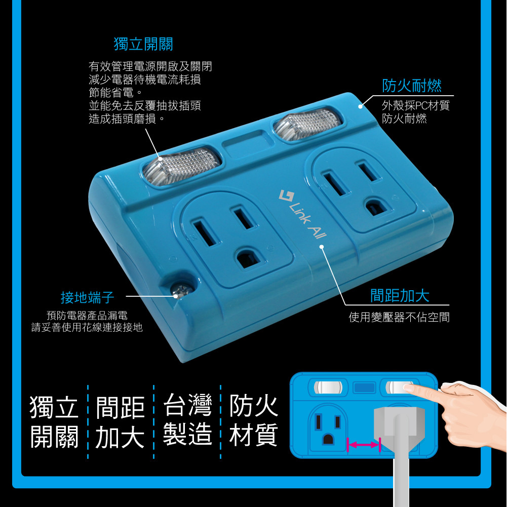 Link All SC-350B / 二開二插 藍色擴充插座 轉接.擴充插座 酷弟3CLink All SC-350B / 二開二插 藍色擴充插座 轉接.擴充插座 酷弟3CElectric Sockets & Extension CordsQD 酷弟3C