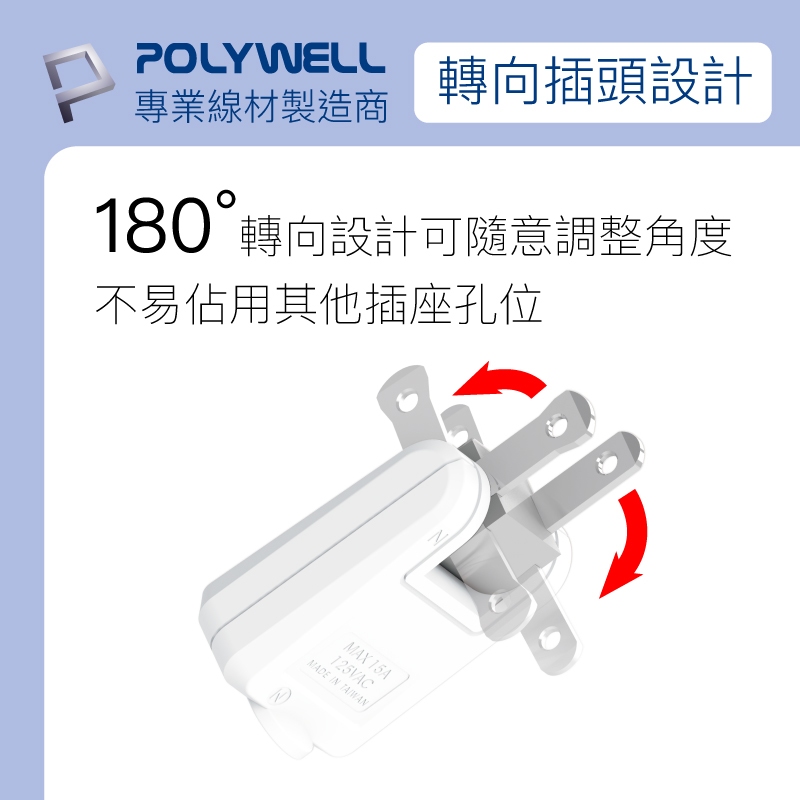 POLYWELL 可轉向平貼式轉接插頭 2P 180度轉向插座 台灣製造MIT 過載保護 自動斷電 寶利威爾 台灣現貨可轉向平貼式轉接插頭 2PElectric Sockets & Extension CordsPOLYWELL寶利威爾官方旗艦店