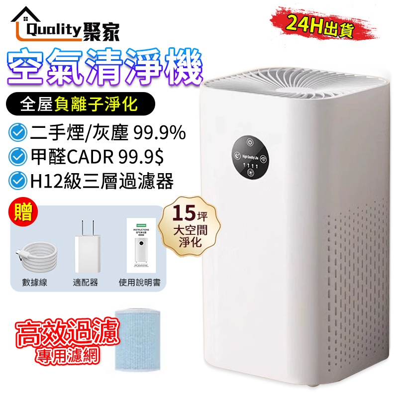 隔日達【Quality 聚家】空氣清淨機 負離子空氣淨化器 母嬰優選 除醛除味除臭 貓毛過濾淨化空氣【品牌保證售後無憂】【高配版】空氣清淨機(9-15坪)|【至尊版】無刷空氣清淨機(13-20坪)|【高配版至尊版通用】H12級超強濾芯Air TreatmentQuality 聚家【官方旗艦店】