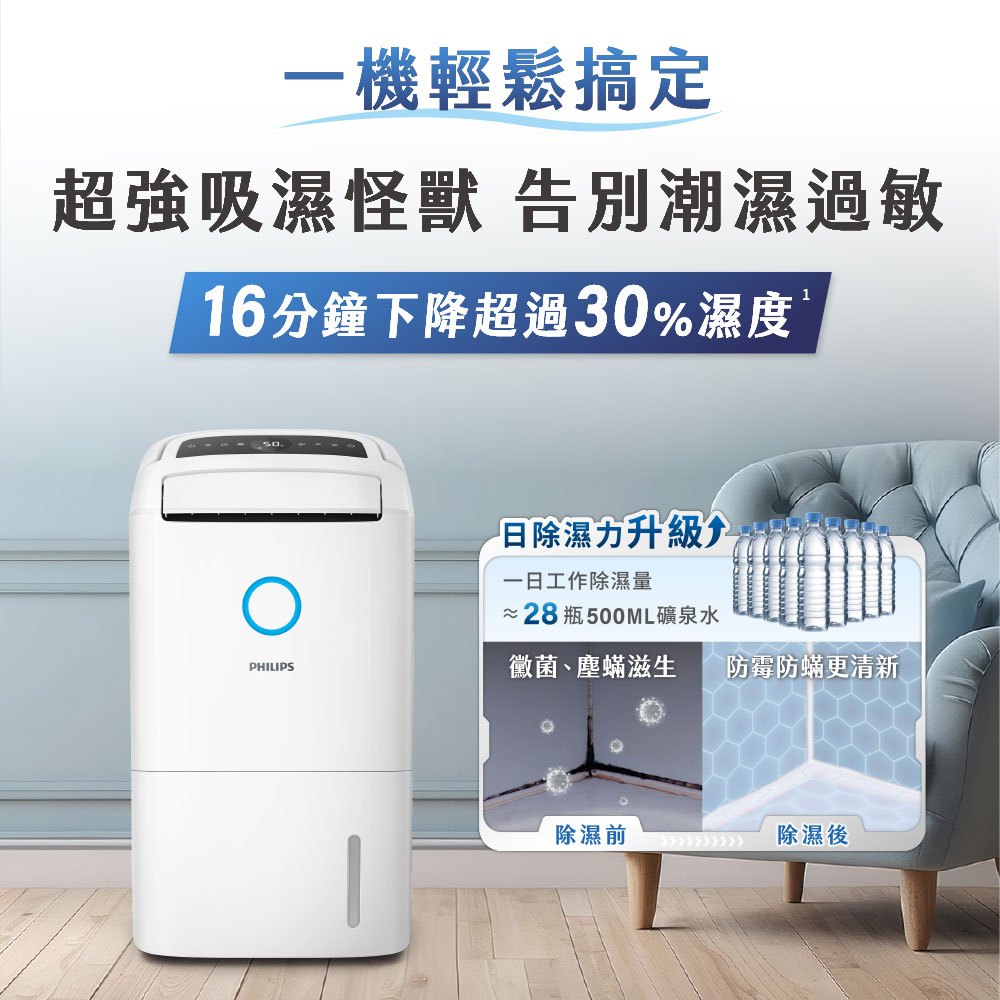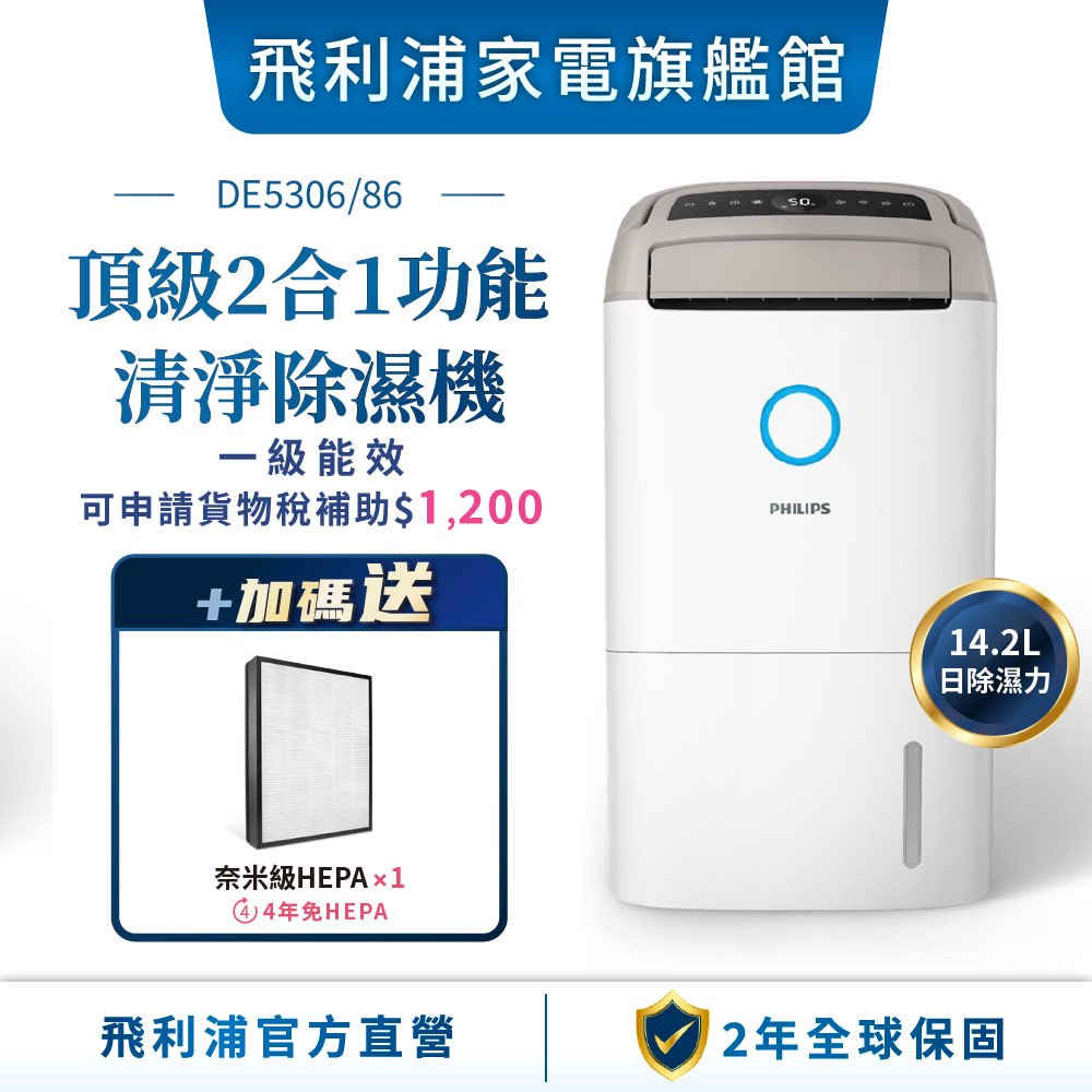 【PHILIPS 飛利浦】14.2L抗敏清淨除濕機 DE5306 一級能效可申請退稅1200 兩色任選