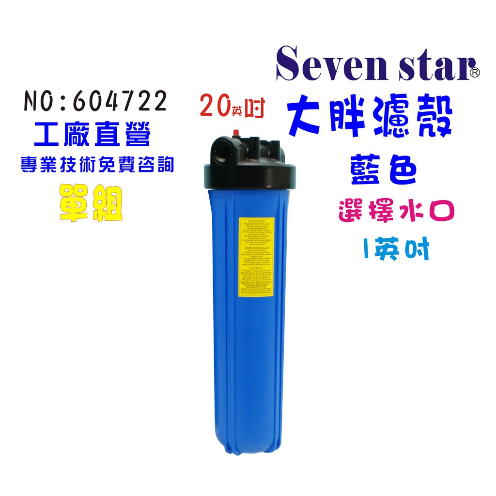 20吋大胖藍色濾殼 濾水器 水塔過濾器 水族養殖 淨水器 貨號 604722 Seven star淨水網1英寸進出水口Water Filters, Coolers & DispensersSeven star 淨水