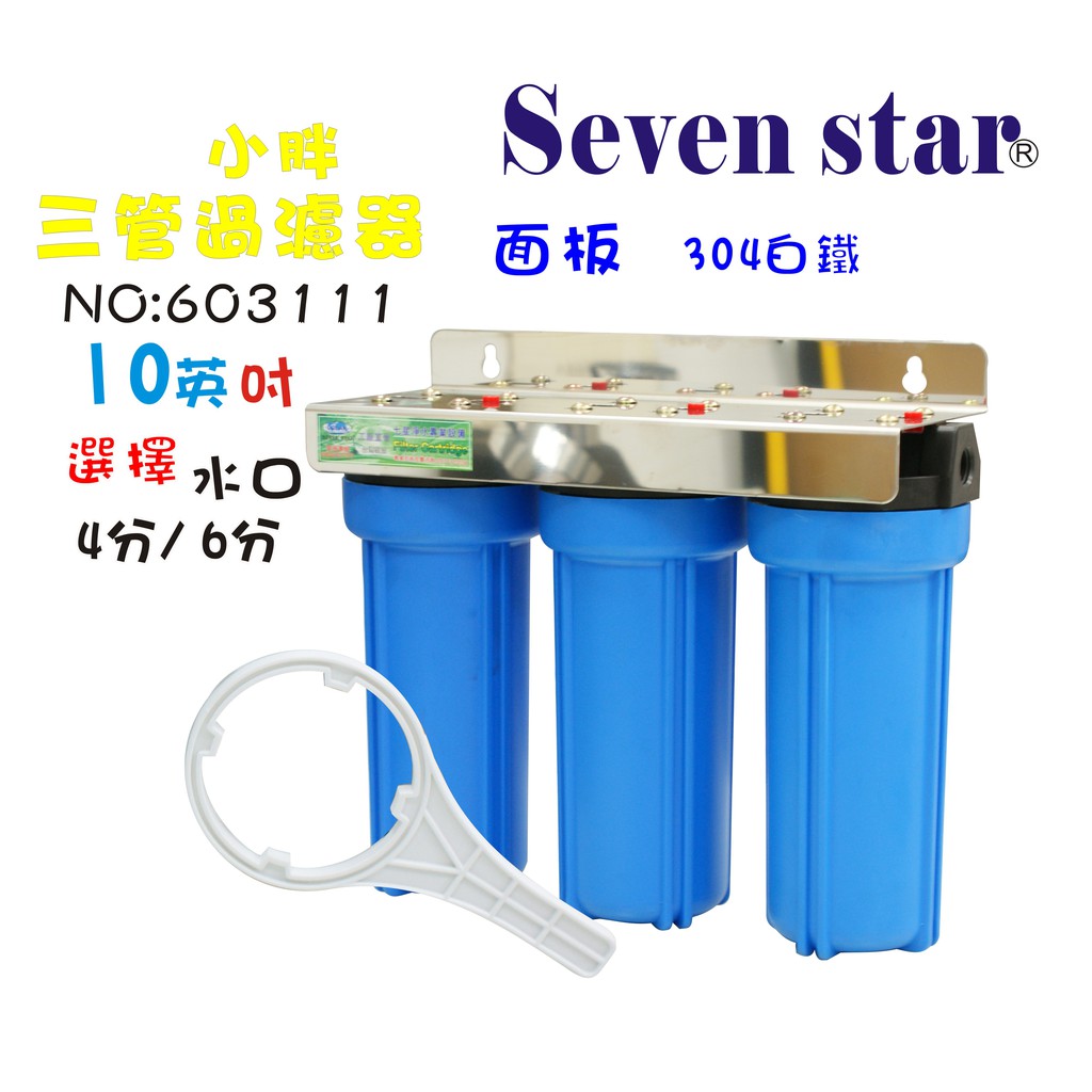 10吋小胖三管全藍白鐵吊片過濾器 濾殼組 過濾器 濾水 濾心 貨號 603111 Seven star淨水網4分|6分|第一道改透明(4分)|第一道改透明(6分)Water Filters, Coolers & DispensersSeven star 淨水