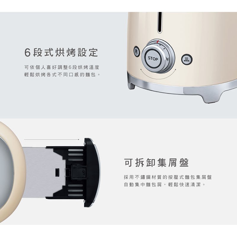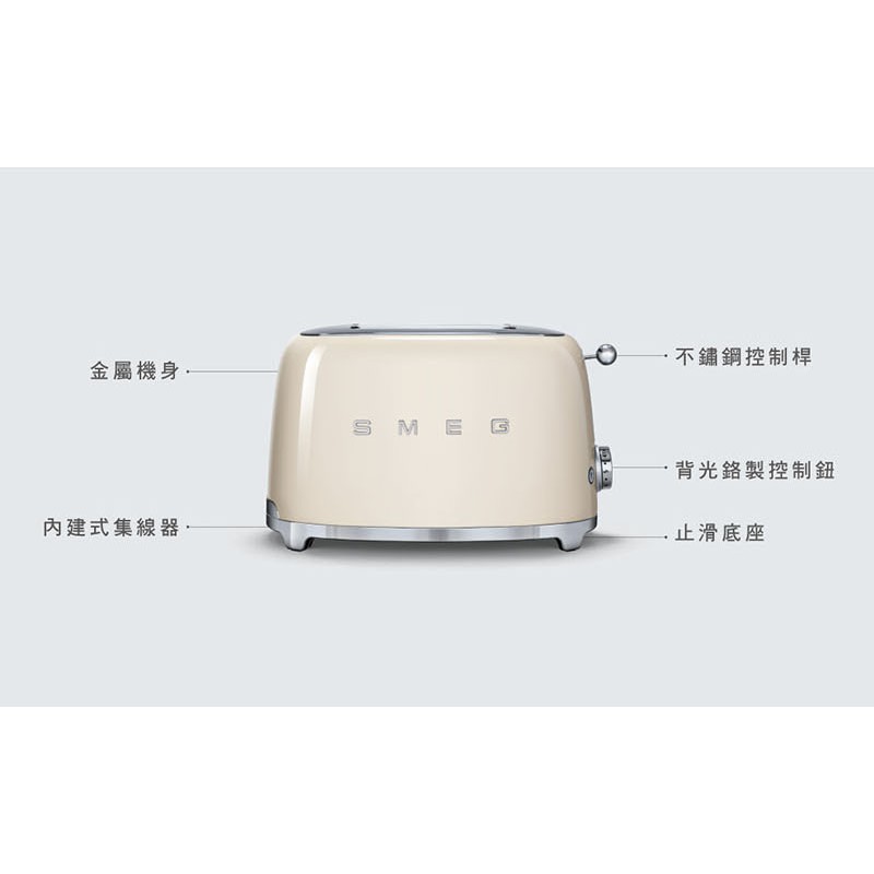 【SMEG】義大利2片式烤麵包機-奶油色【SMEG】義大利2片式烤麵包機-奶油色ToastersSMEG 台灣官方旗艦店