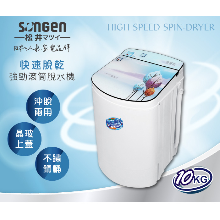 【SONGEN松井】10KG不鏽鋼滾筒沖脫兩用強勁脫水機(SG-T98-W)【SONGEN松井】10KG不鏽鋼滾筒沖脫兩用強勁脫水機(SG-T98-W)Washing Machines & DryersSONGEN松井 官方旗艦店|日本人氣家電品牌