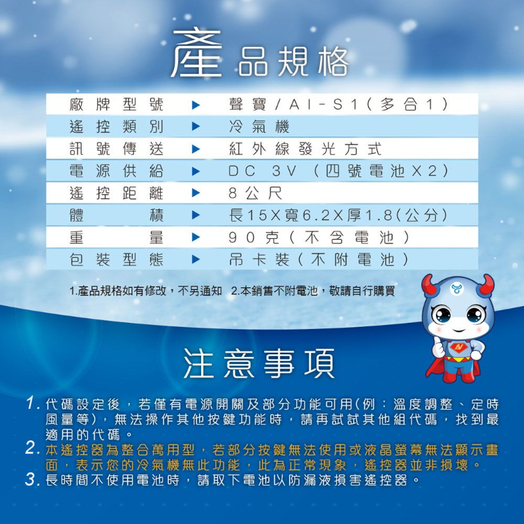 聖岡 聲寶 禾聯紅外線冷氣遙控器 (AI-S1) 聲寶 SAMPO 禾聯 良峰 聯碩 夏普 萬士益/國品 冷氣用聖岡 聲寶 禾聯紅外線冷氣遙控器 (AI-S1) 聲寶 SAMPO 禾聯 良峰 聯碩 夏普 萬士益/國品 冷氣用SPT精緻家電館