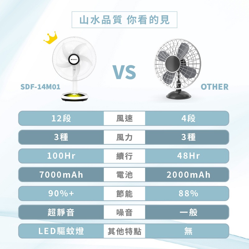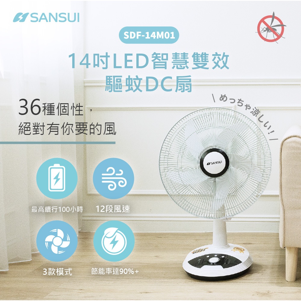 【SANSUI 山水】14吋無線充電式驅蚊DC扇 (充插兩用) 無線風扇 最長續航100小時 SDF-14M01驅蚊風扇SDF-14M01CoolingSANSUI山水 官方旗艦店 | 創造美好舒適生活