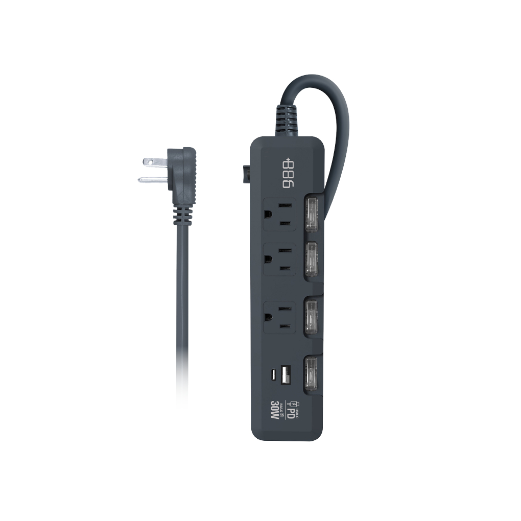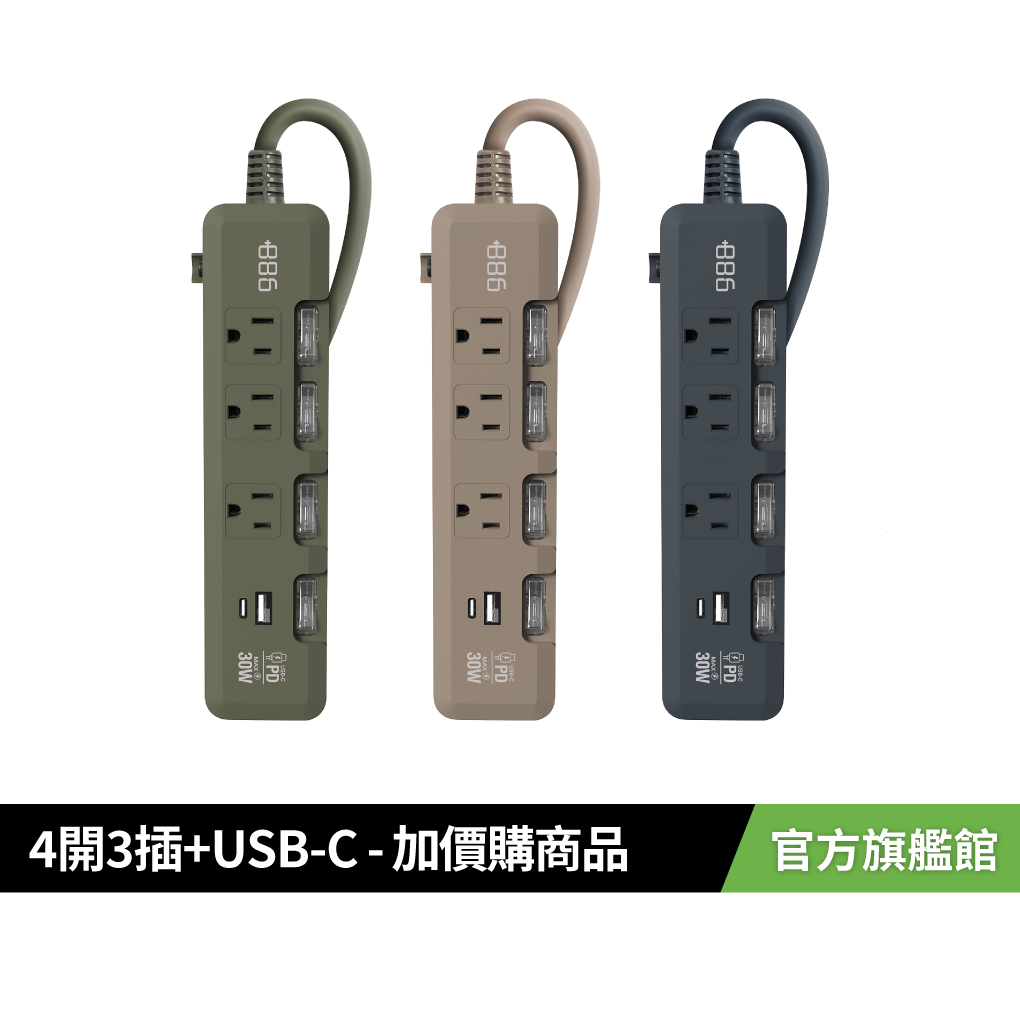 +886 [極野家]4開3插USB+Type C PD 30W 快充延長線 1.8米奶茶棕|軍綠|迷霧灰Electric Sockets & Extension CordsSeagate 希捷官方旗艦館