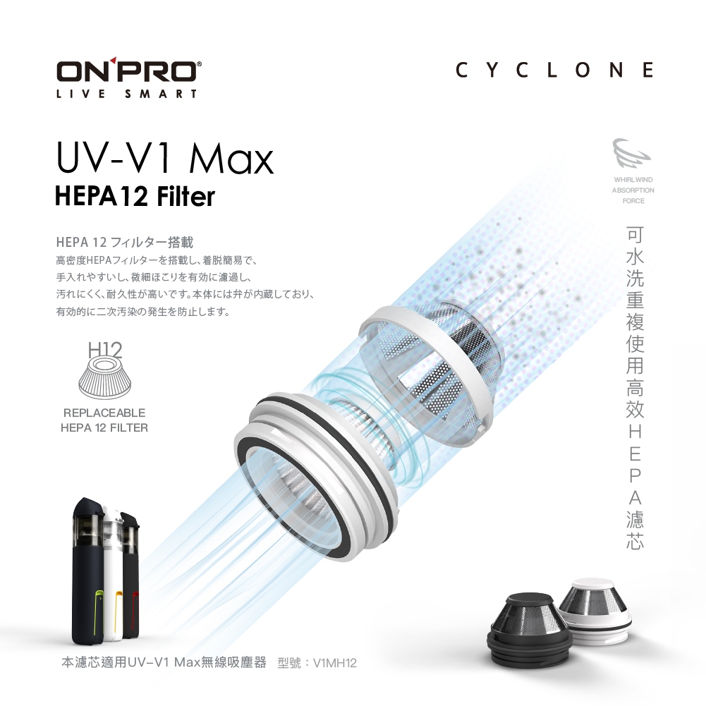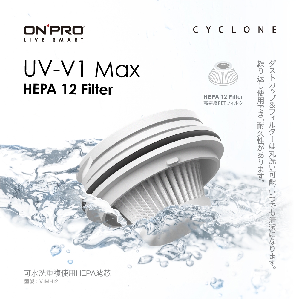 ONPRO V1MH12 UV-V1 MAX第三代吸塵器專用【HEPA12可水洗替換濾芯+不鏽鋼濾網】靜岡黑專用|瑞典藍專用|挪威白專用Vacuum Cleaners & Floor Care AppliancesONPRO超急速充電 官方旗艦館