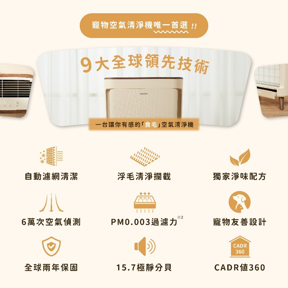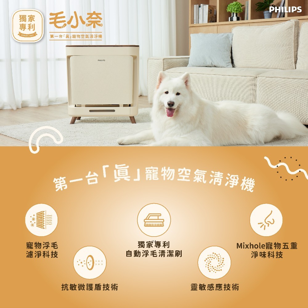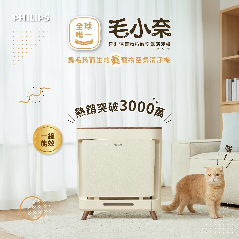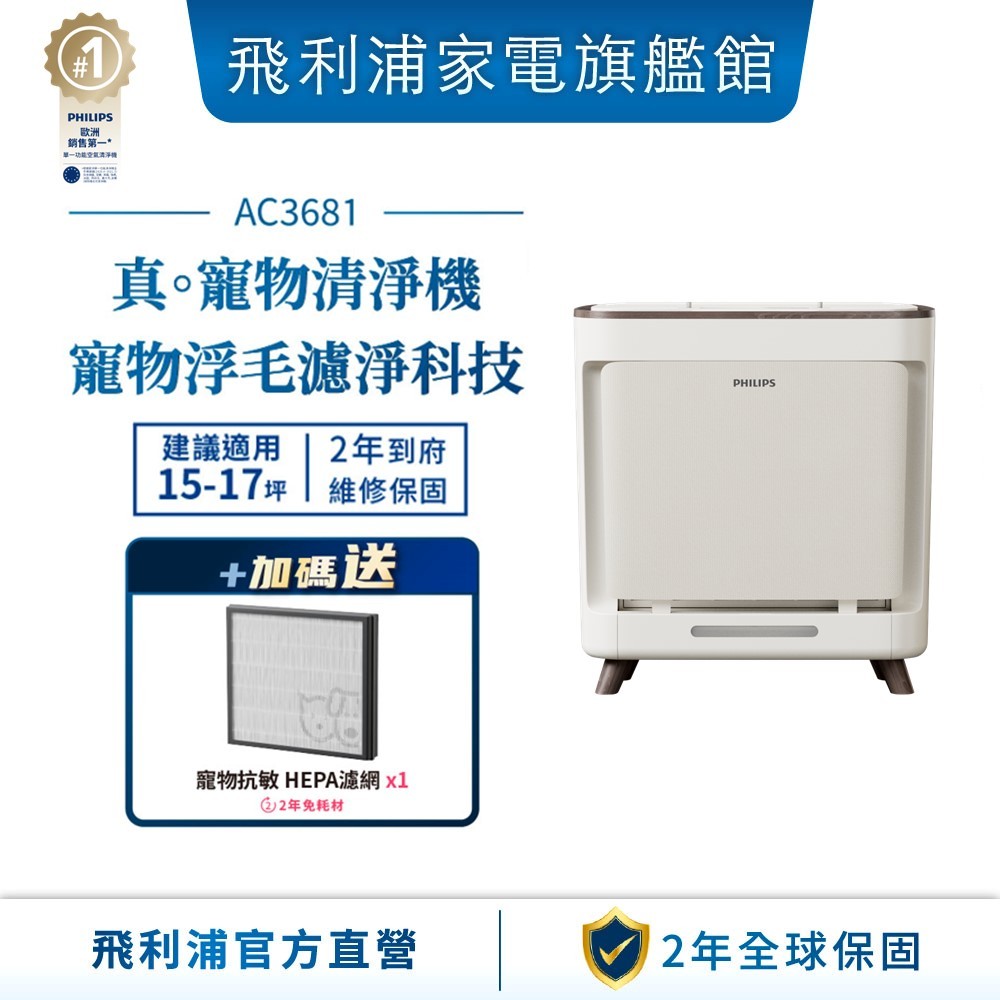 【PHILIPS 飛利浦】毛小奈抗敏寵物清淨機 適用17坪 AC3681備用|AC3681/81Air TreatmentPhilips 飛利浦家電旗艦館