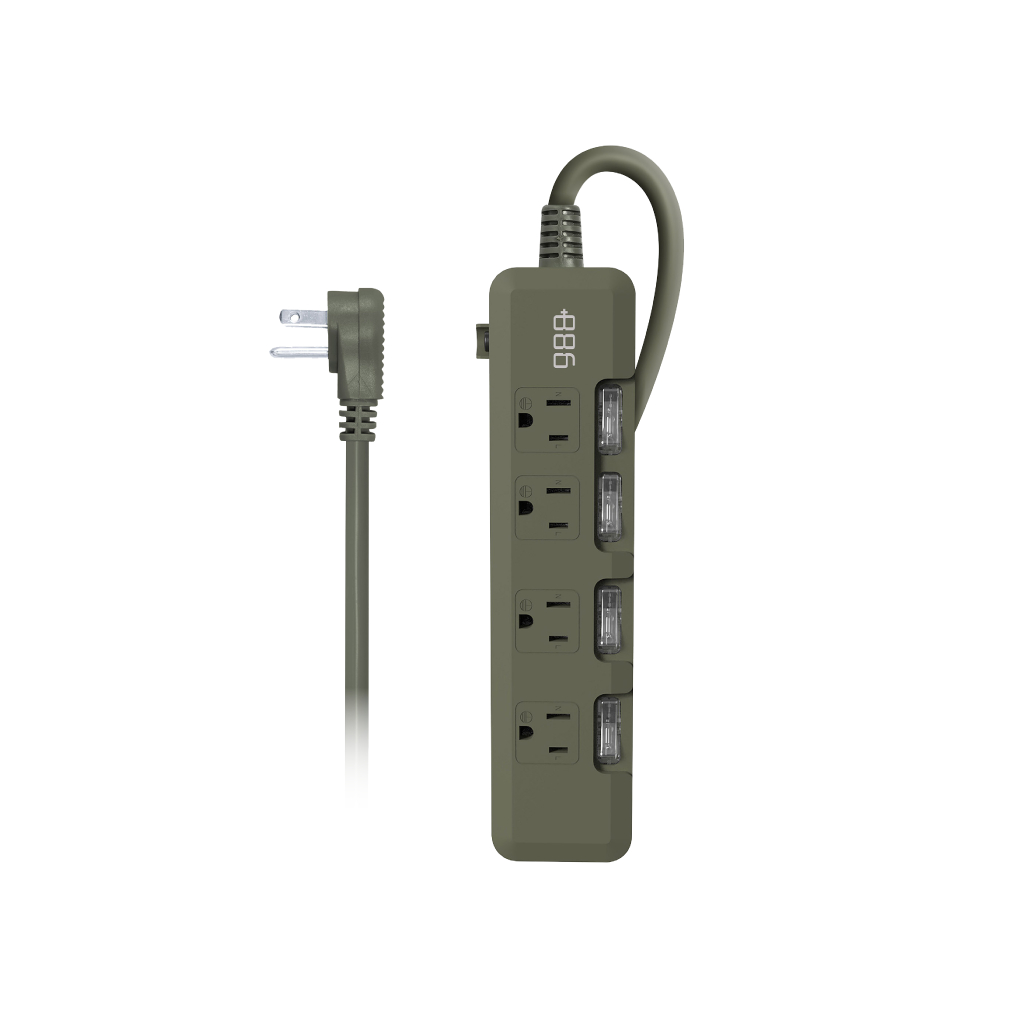 +886 [極野家] 4開4插過載保護延長線 1.8米 三色任選 加購品奶茶棕|軍綠|迷霧灰Electric Sockets & Extension CordsSeagate 希捷官方旗艦館