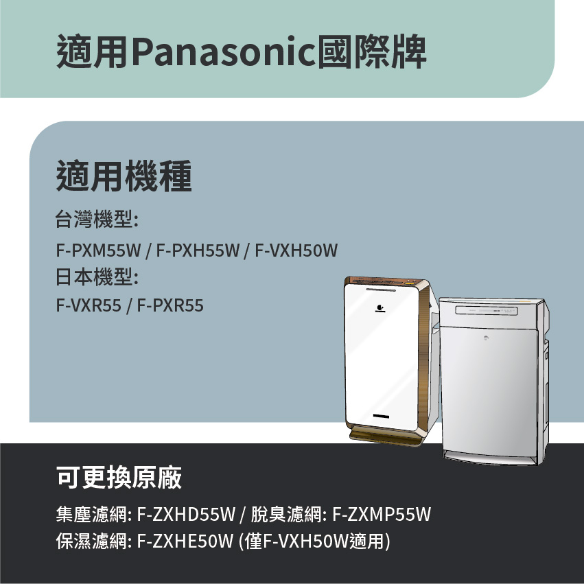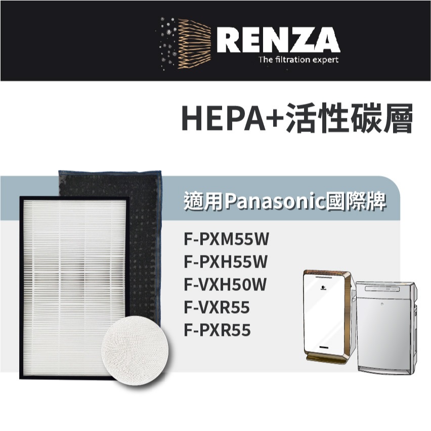 適用Panasonic 國際牌 F-PXM55W F-PXH55W F-VXH50W 高效HEPA濾網+蜂巢活性碳濾網1片加濕濾網(僅F-VXH50W適用)|1片抗敏HEPA+1片除臭活性碳|1片抗敏HEPA|1片除臭活性碳Air TreatmentRenza Filtration 濾網專家
