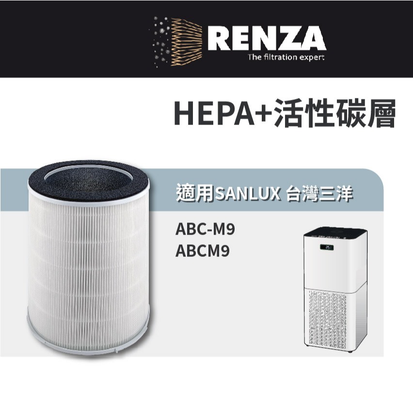 適用SANLUX 台灣三洋 ABC-M9 17坪空氣清淨機 替換CAFT-M9HC HEPA 活性碳 四合一濾網 濾芯組ABC-M9 超商最多一件Air TreatmentRenza Filtration 濾網專家