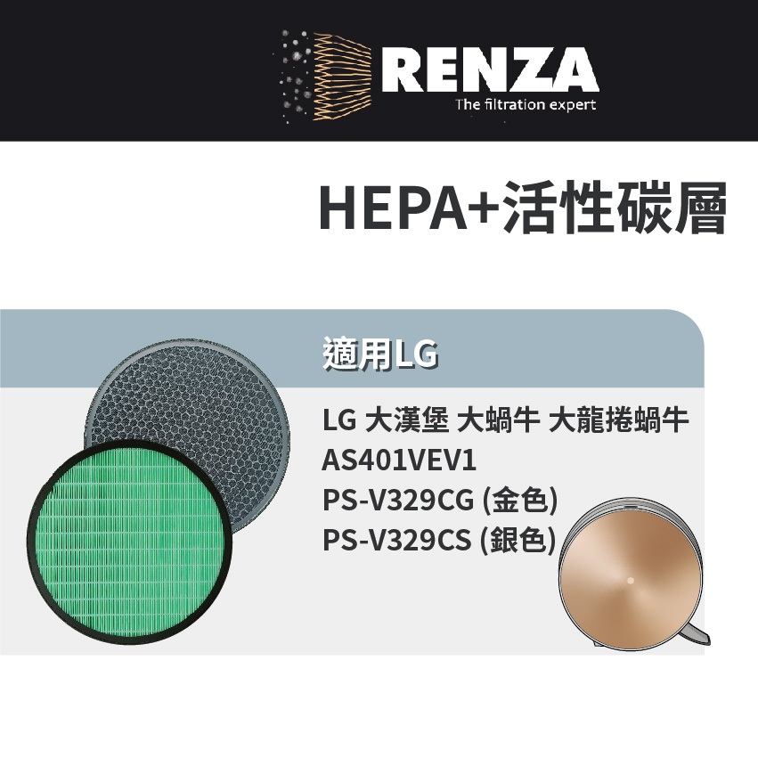 適用LG 樂金AS401VEV1 PS-V329CG PS-V329CS 大漢堡大蝸牛空氣清淨機HEPA活性碳濾網 濾芯適用LG 樂金AS401VEV1 PS-V329CG PS-V329CS 大漢堡大蝸牛空氣清淨機HEPA活性碳濾網 濾芯Air TreatmentRenza Filtration 濾網專家