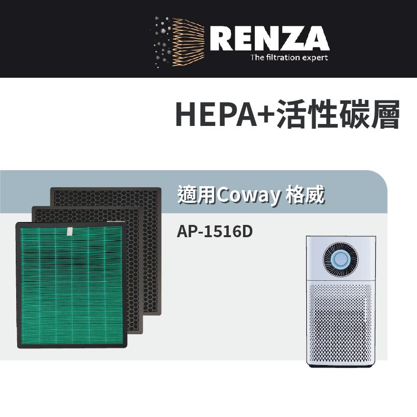 適用 Coway 格威 AP-1516D AP1516D 1516 大孔劉空氣清淨機 抗菌HEPA+活性碳 濾網 濾心1片HEPA+2片活性碳(超商最多1組)|1片抗菌HEPA濾網|1片蜂巢活性碳濾網(除臭除甲醛)Air TreatmentRenza Filtration 濾網專家